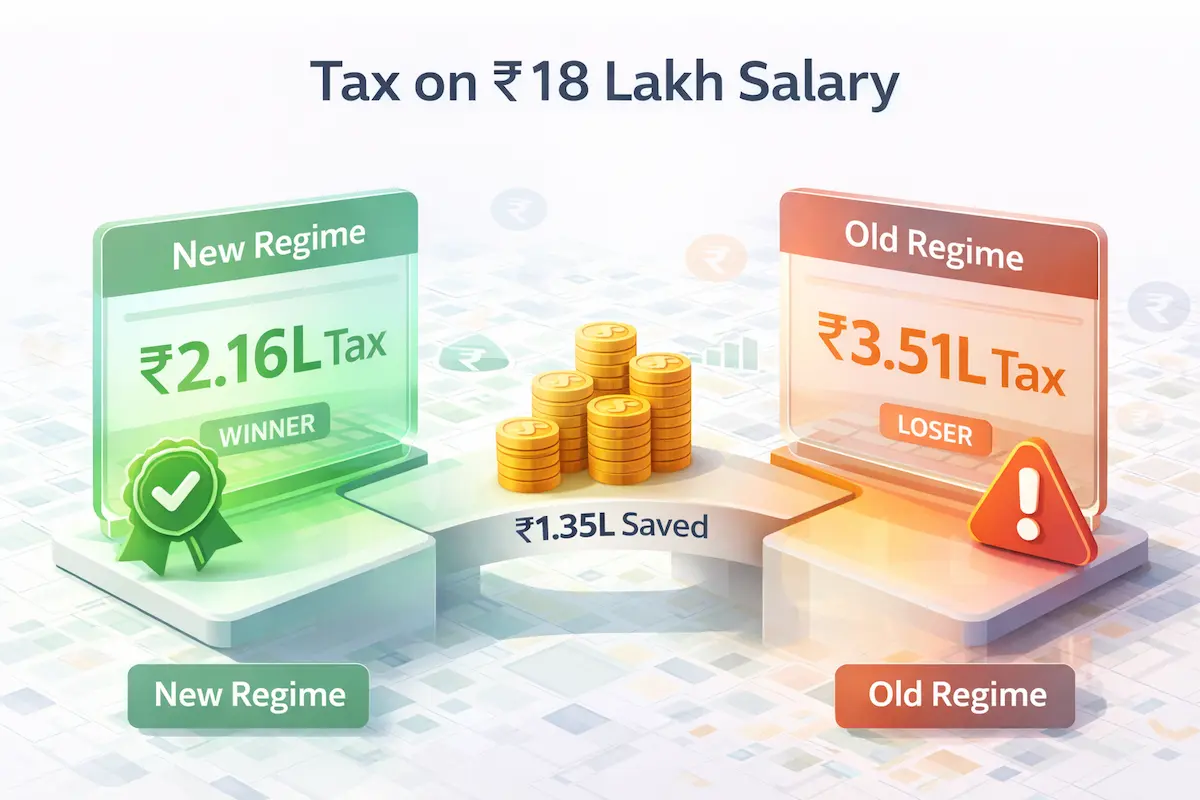 For a ₹18 Lakh salary, the New Tax Regime is the most efficient option. It saves you ~₹1.35 Lakhs compared to the Old Regime without needing any investment proofs.